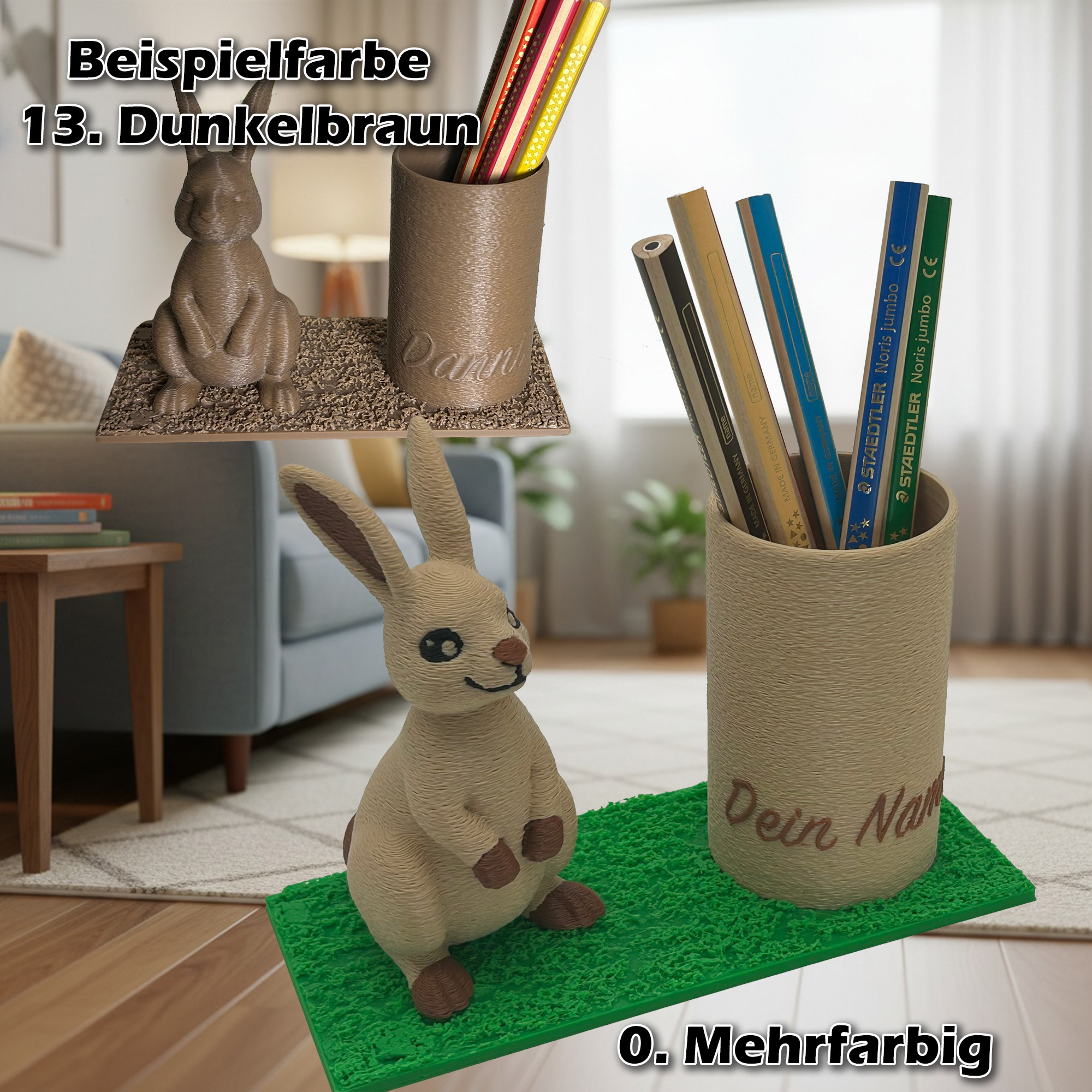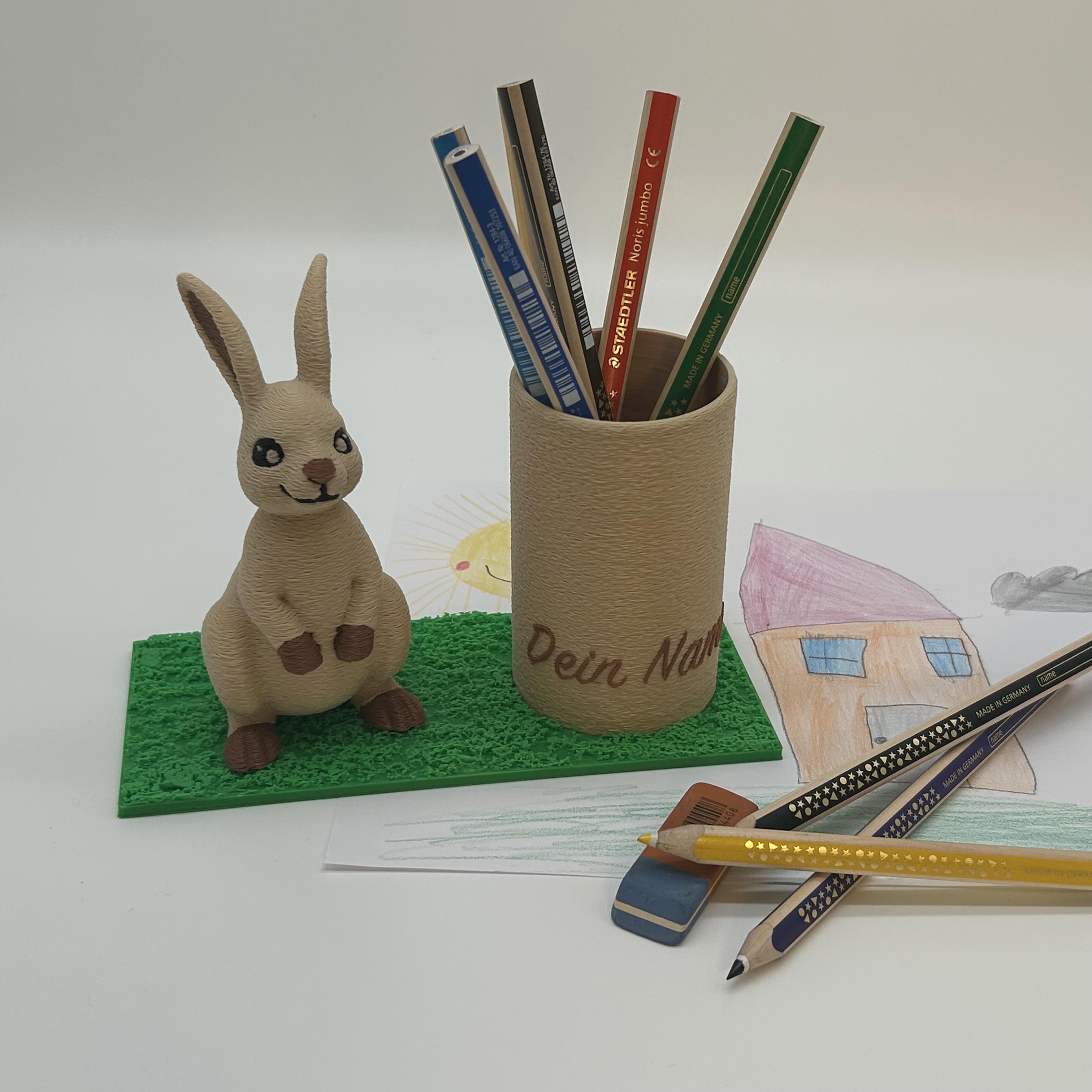 - Wir fertigen deinen Hasen-Stiftehalter im 3D-Druck individuell.