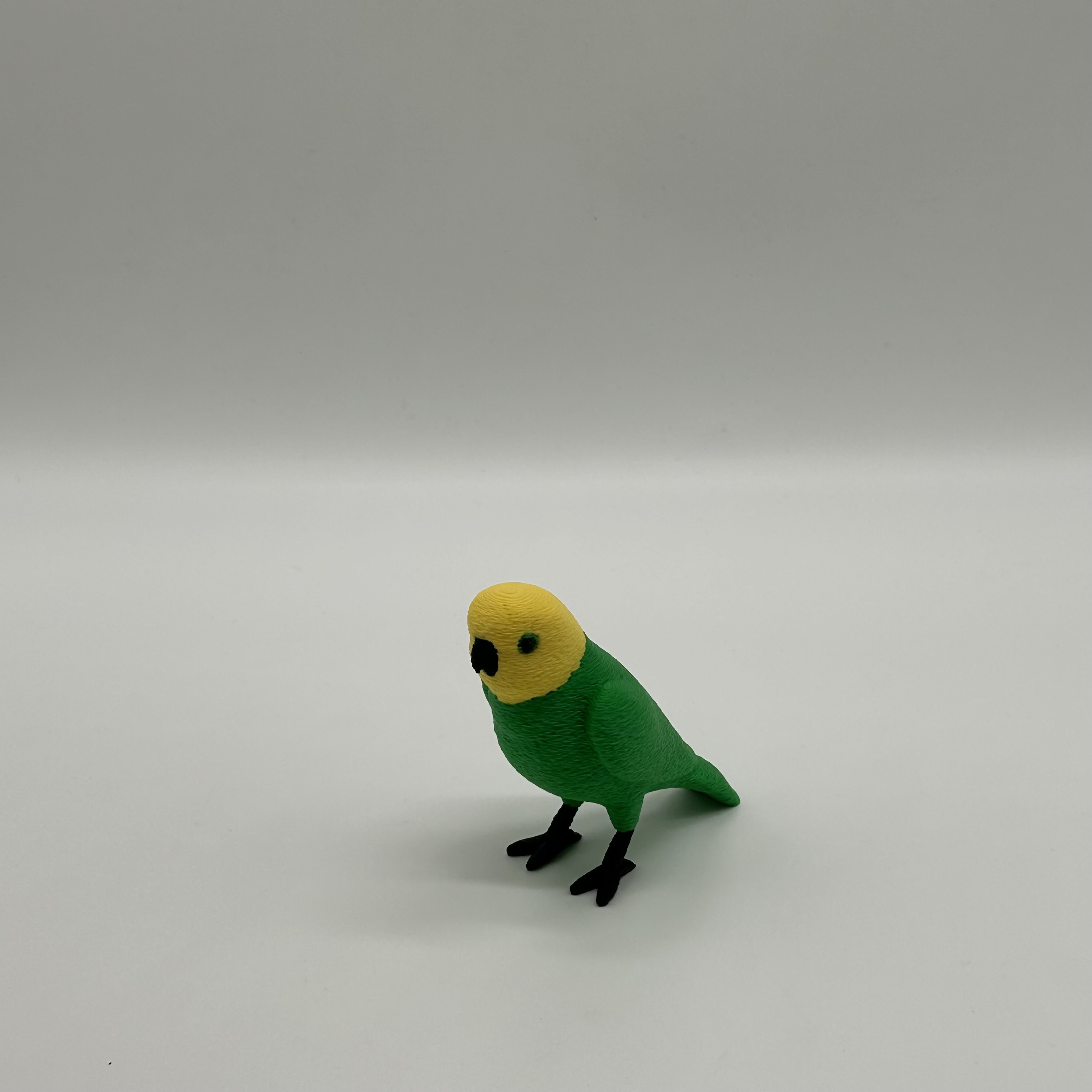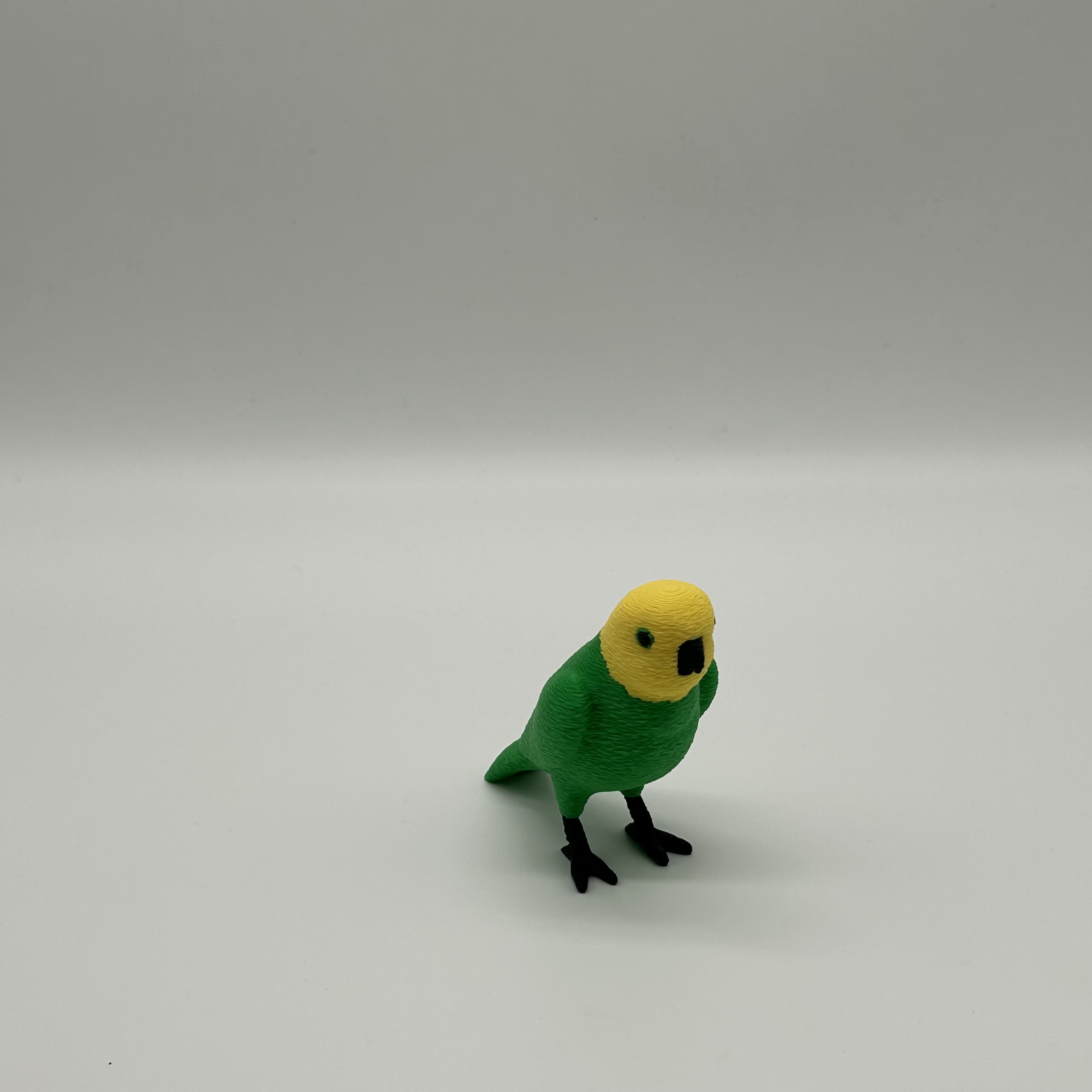 - Design: freundlicher Wellensittich, kindgerecht modelliert