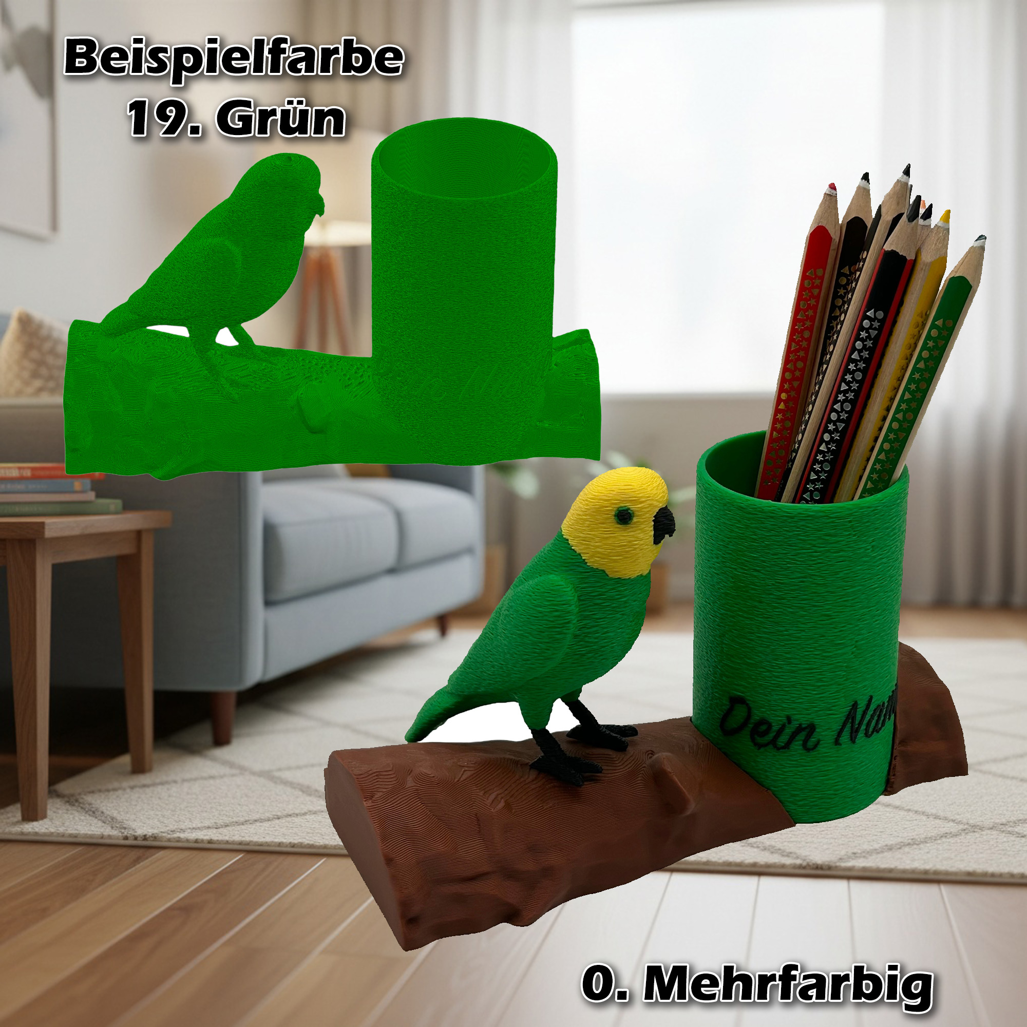 - Wir fertigen deinen Wellensittich-Stiftehalter im 3D-Druck individuell an.