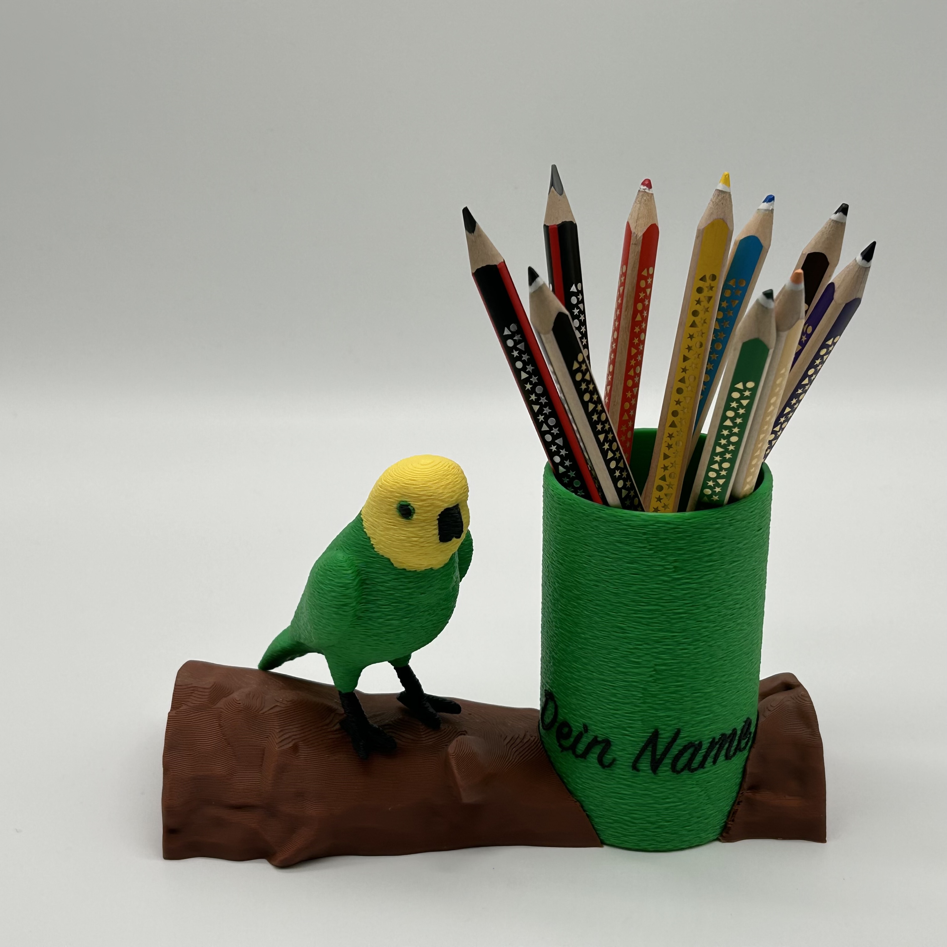 Wellensittich – Stiftehalter aus PLA (personalisiert)